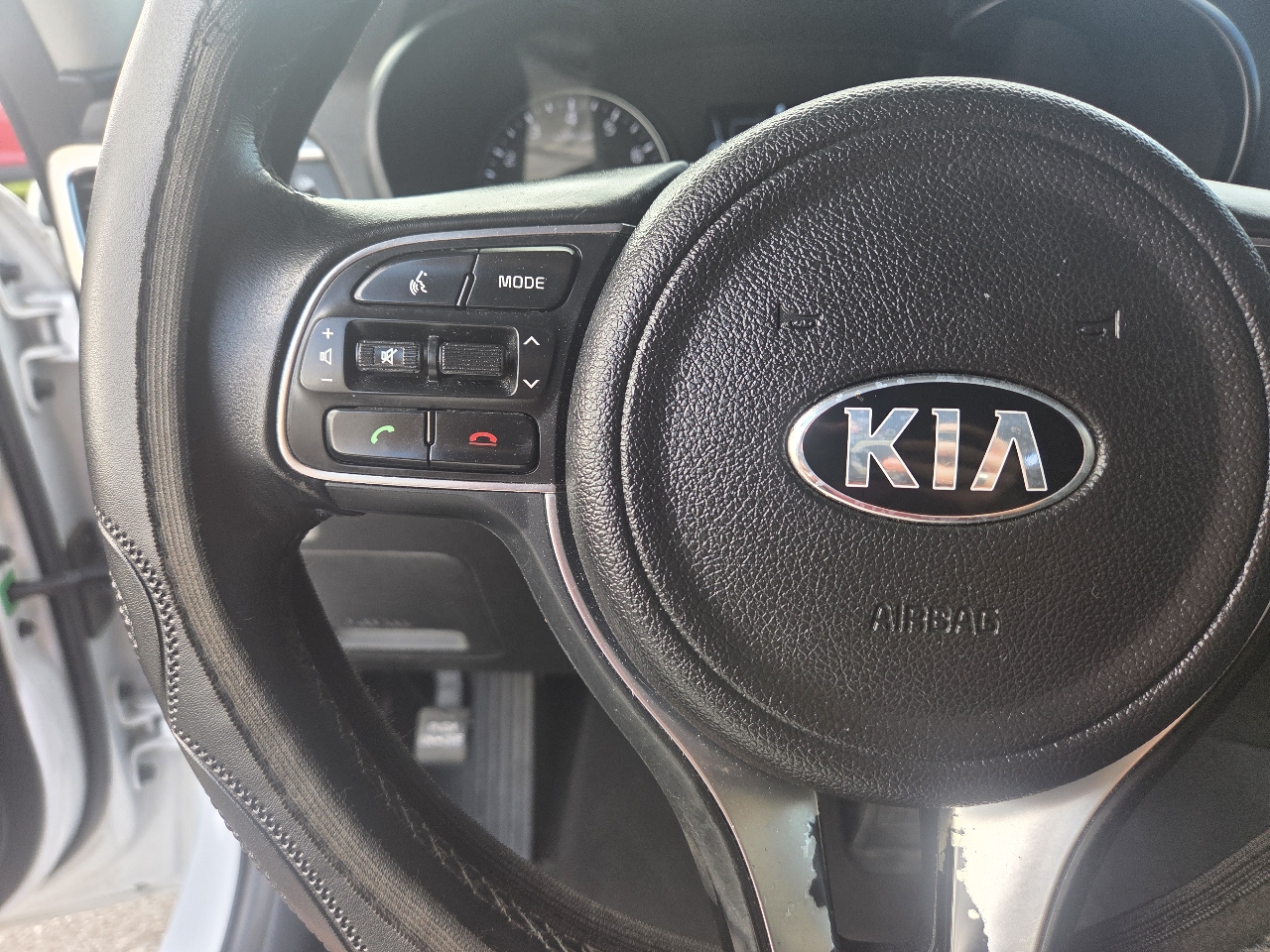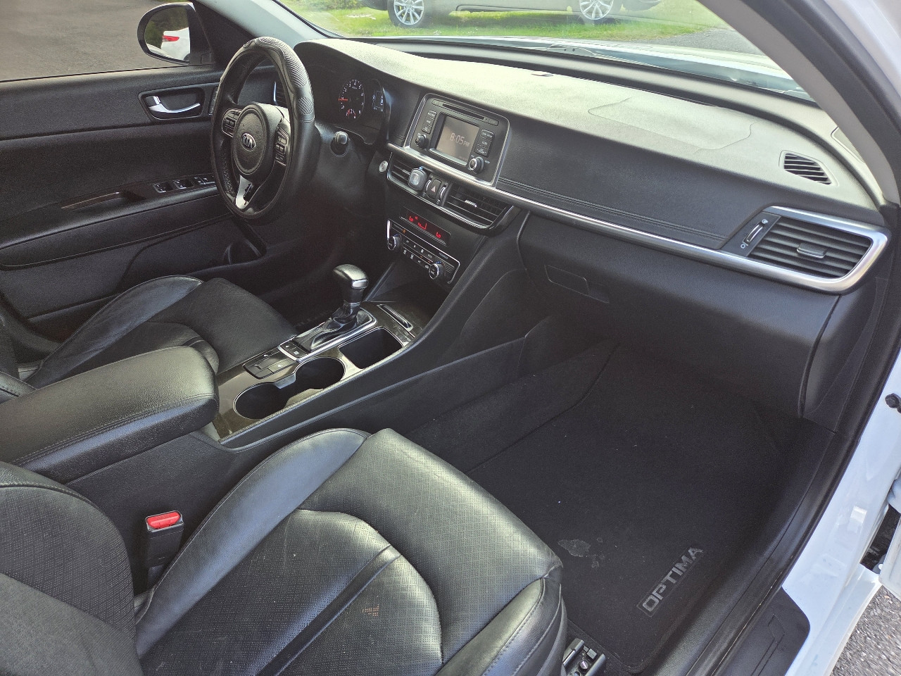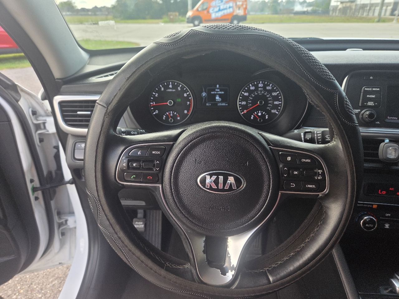 Hop into this sleek and stylish 2016 Pearl White Kia Optima and get ready for a fun ride! Powered by a zippy 2.4L DOHC I4 GDI engine, this car is perfect for cruising around town. The smooth 6-speed automatic transmission with Sportmatic technology allows you to switch between drive modes for a customized driving experience. With front-wheel drive and a 2.88 axle ratio, you'll feel confident on the road.Step inside to discover the comfortable and luxurious interior, complete with a heated leather steering wheel and dual-zone front automatic air conditioning. The 6-way passenger seat and 60-40 folding bench rear seat offer plenty of space for your friends and family. Stay entertained with the 6-speaker sound system and 2 LCD monitors.