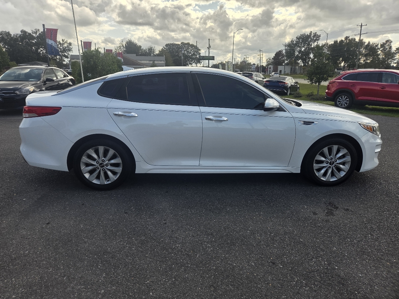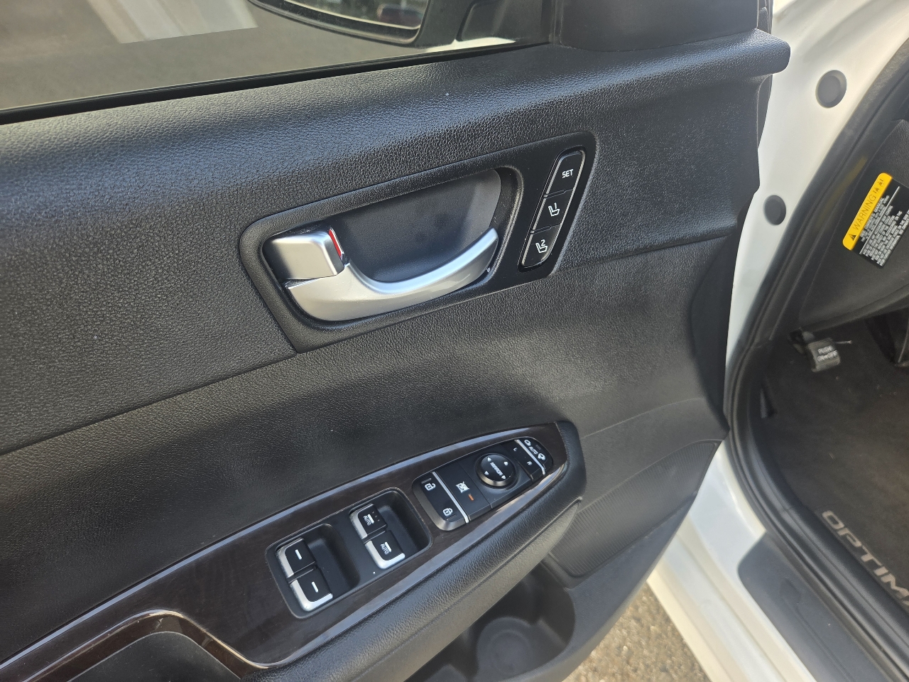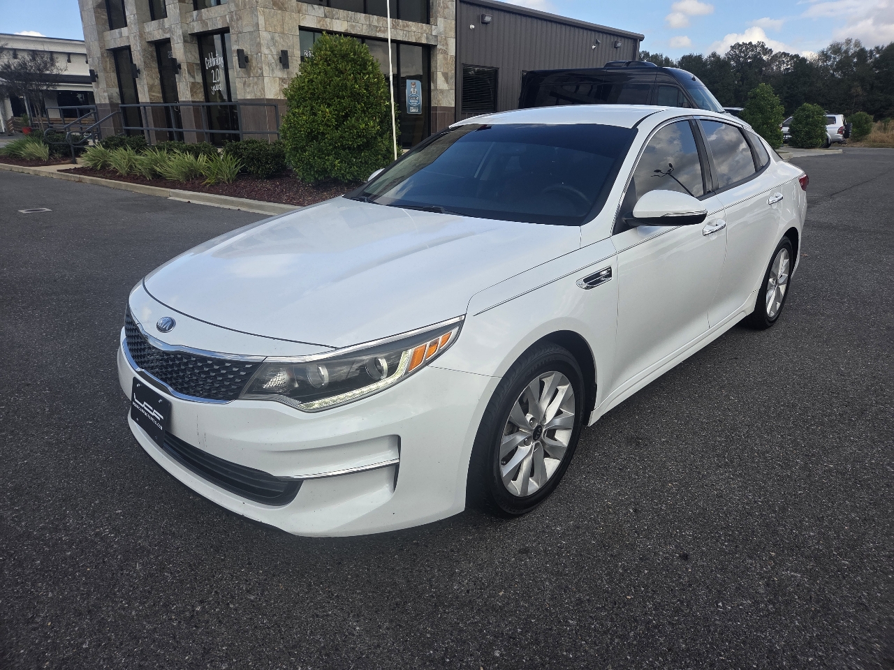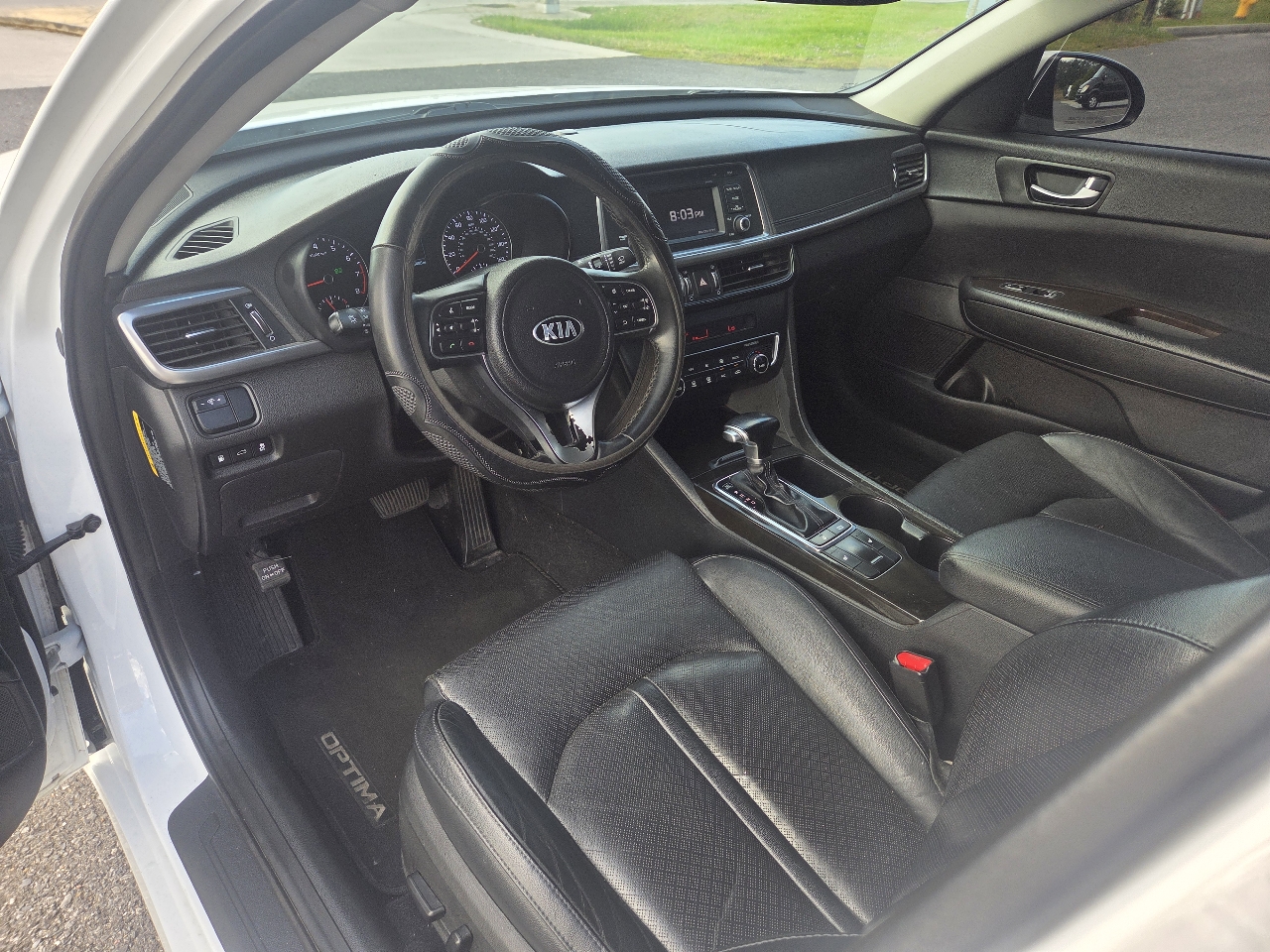 Hop into this sleek and stylish 2016 Pearl White Kia Optima and get ready for a fun ride! Powered by a zippy 2.4L DOHC I4 GDI engine, this car is perfect for cruising around town. The smooth 6-speed automatic transmission with Sportmatic technology allows you to switch between drive modes for a customized driving experience. With front-wheel drive and a 2.88 axle ratio, you'll feel confident on the road.Step inside to discover the comfortable and luxurious interior, complete with a heated leather steering wheel and dual-zone front automatic air conditioning. The 6-way passenger seat and 60-40 folding bench rear seat offer plenty of space for your friends and family. Stay entertained with the 6-speaker sound system and 2 LCD monitors.
